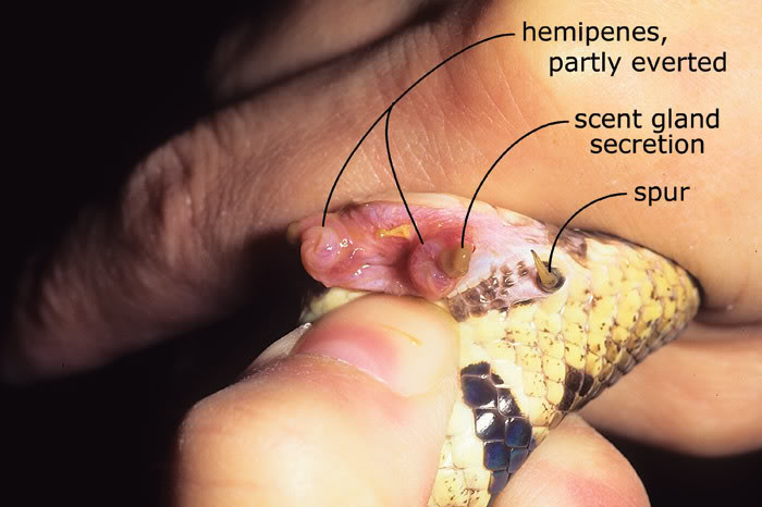 Step 3: If the snake is a male, their hemipenes will pop-out that is characterized by pinkish or reddish rods that are situated on each side of the cloacal opening. If it is a female, you will see an erected scent gland papillae that look like a small hemipenis, but it is only described as a red tip.